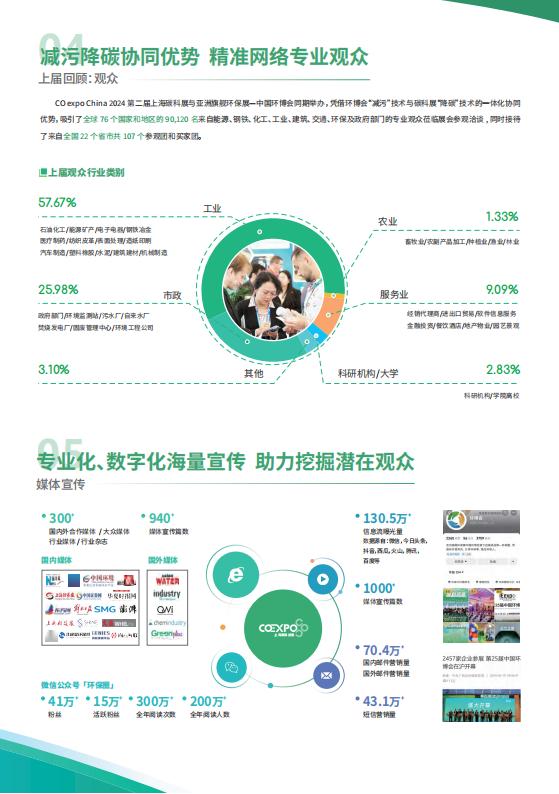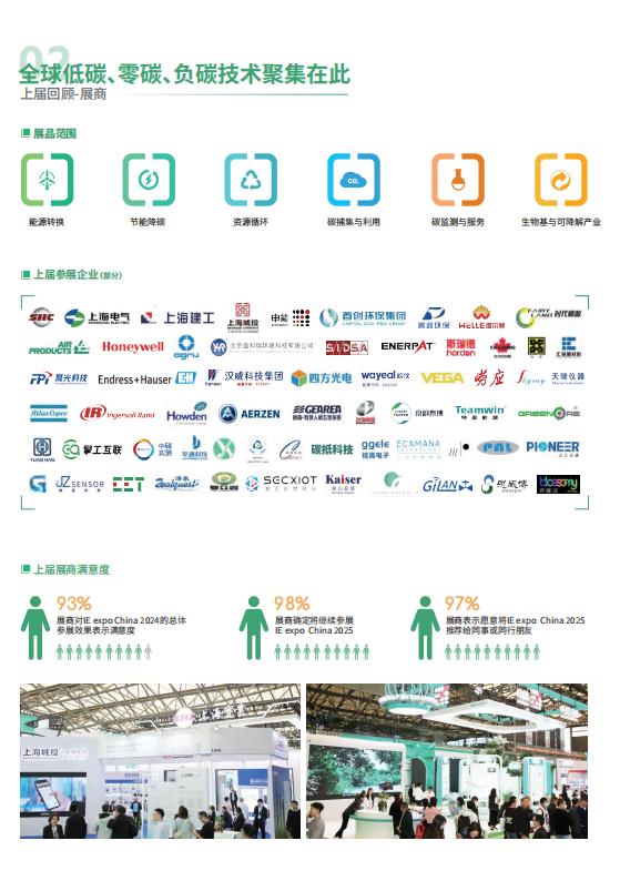 2025上海碳科展将与亚洲旗舰环保展-中国环博会同期举办,预计总展览面积将达20多万平方米,有来自35个国家与地区的超过2300家企业参展,将重点邀请来自电力能源、钢铁、化工、建材、有色金属、交通及政府部门与科研等重点领域企业及部门人员参加。 全球展会展位预定TEL: 136-8178-9769(江经理)