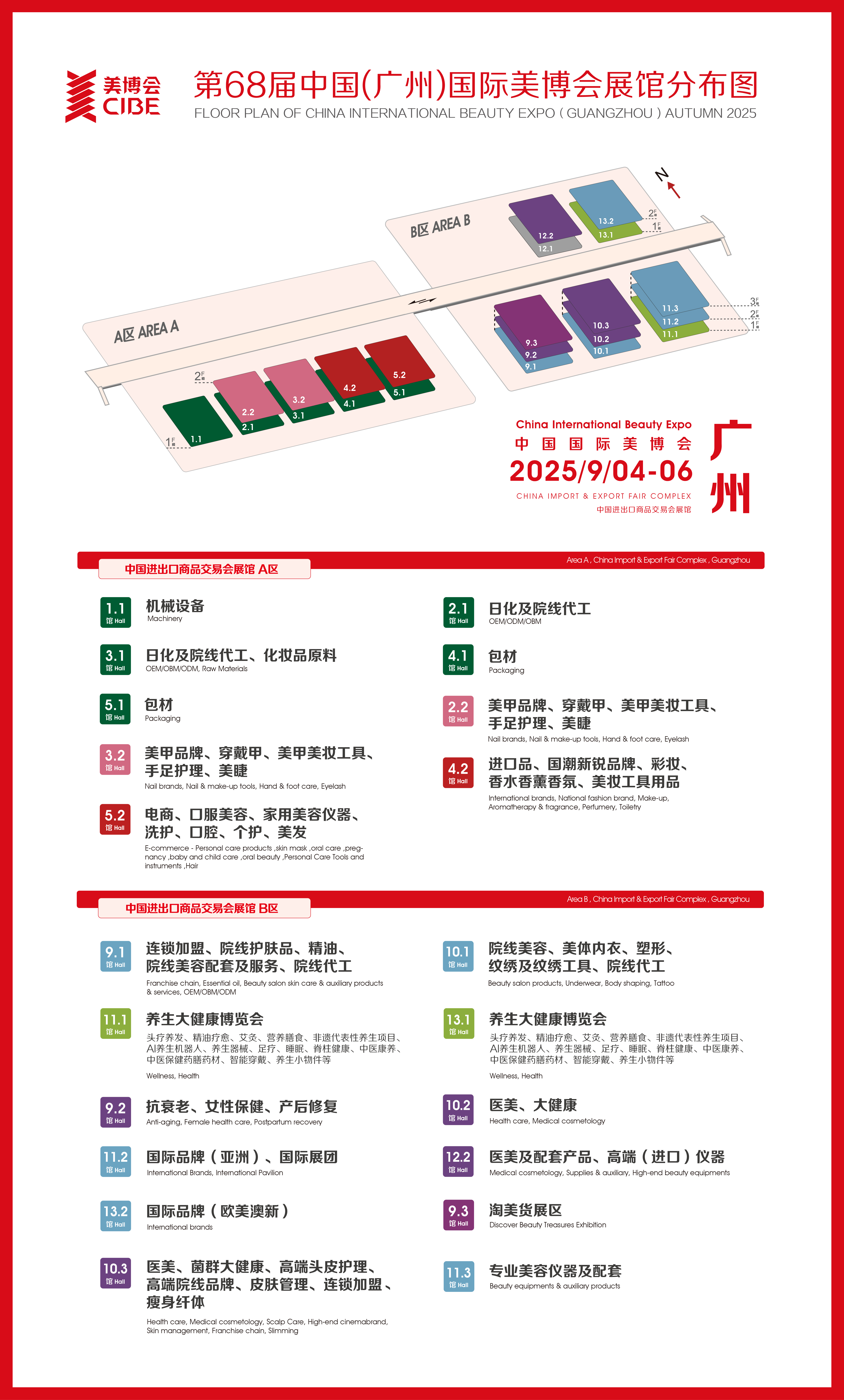 9.1-13.1馆:聚焦医美抗衰与轻医美,12.2馆展示医美耗材与联名美容仪器,9.3馆推出斑痘敏功效护理及特妆字号产品。