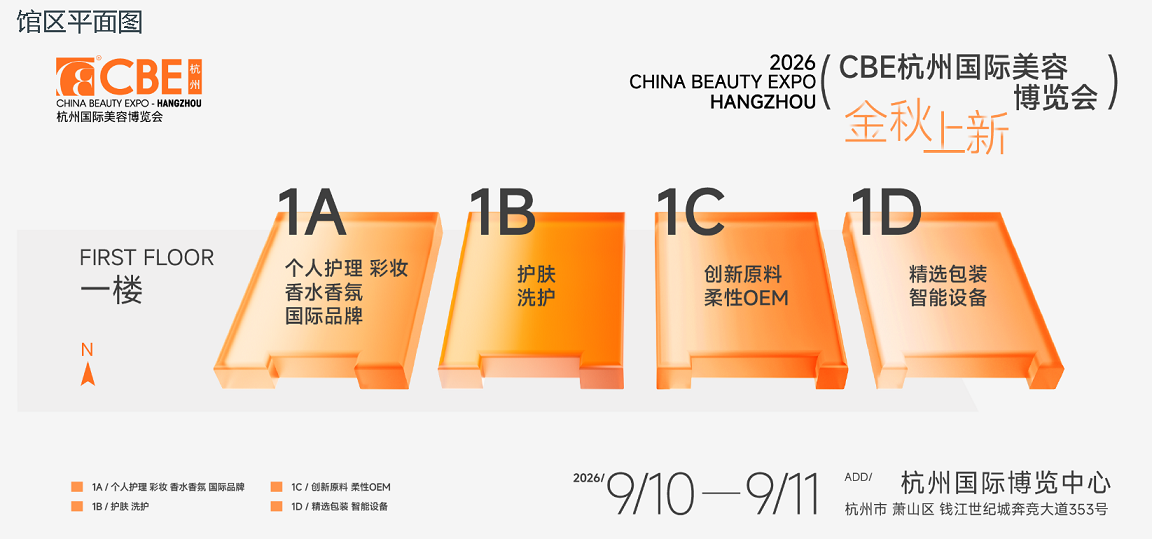 2026年CBE杭州国际美容博览会定于2026年9月10-11日在杭州国际博览中心隆重举办。本届展会以"金秋上新"为主题,聚焦新产品、新原料、新场景的落地呈现。值此行业下半年新品发布与采购旺季,展会严选全球20多个国家及地区的700余家化妆品企业,汇聚中国新锐品牌、特色原料企业、红人机构、潮流零售新场景等创新资源。